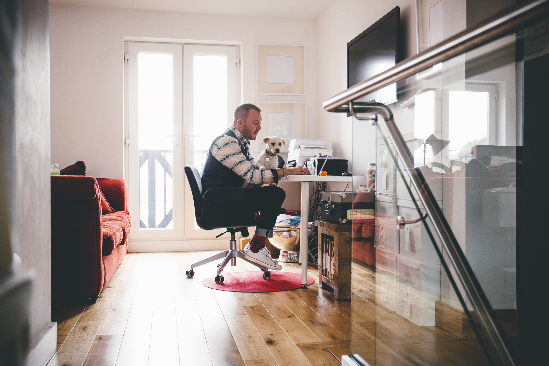 If you’ve got space in an open-floor plan, arranging your area so that your desk is against the back of the sofa is a great way to designate an office zone and keep things secure. You preserve your living space and get a dedicated workspace.