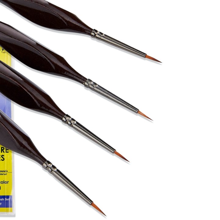 Artists looking for the best 000 brushes need look no further than D’Artisan Shoppe’s four-piece set. The duplicate paint brushes are made of synthetic nylon bristles to withstand face painting, miniature painting, acrylic painting, and more.