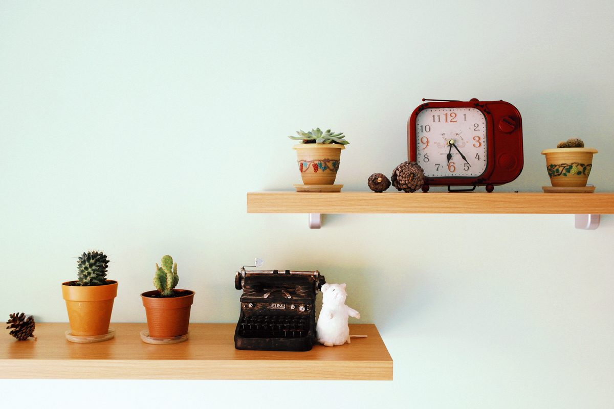 Don’t be afraid to add wall racks and shelves in spaces other than the expected — and vary up the sizes and styles, as well. Hang cups or pans in the kitchen, stack books and artwork in the living room, or display rows of knickknacks in the hallway.