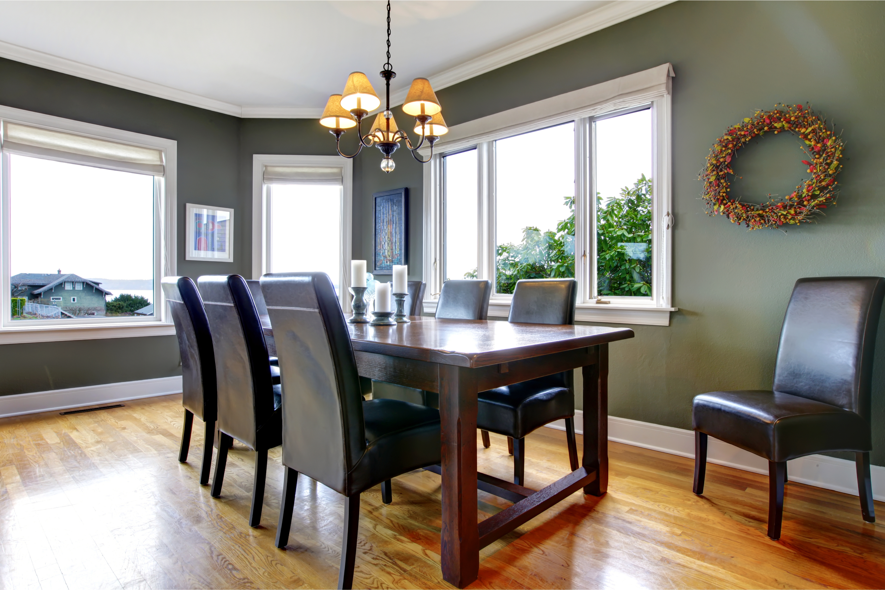 If you enjoy warm nights in front of the fire and would rather stay in and watch a movie than go out on the town, this soothing vibe is for you. If you have dark brown furniture and want the room to be your sanctuary, mid-tone walls are the way to go. Think about incorporating golden yellow, soft blues, grayish-greens, soothing greys, and creamy beiges. With these tones, the walls seem to welcome you in rather than pop for attention. If your sofa is a lighter brown, use deeper shades for the walls like navy blue or slate grey.