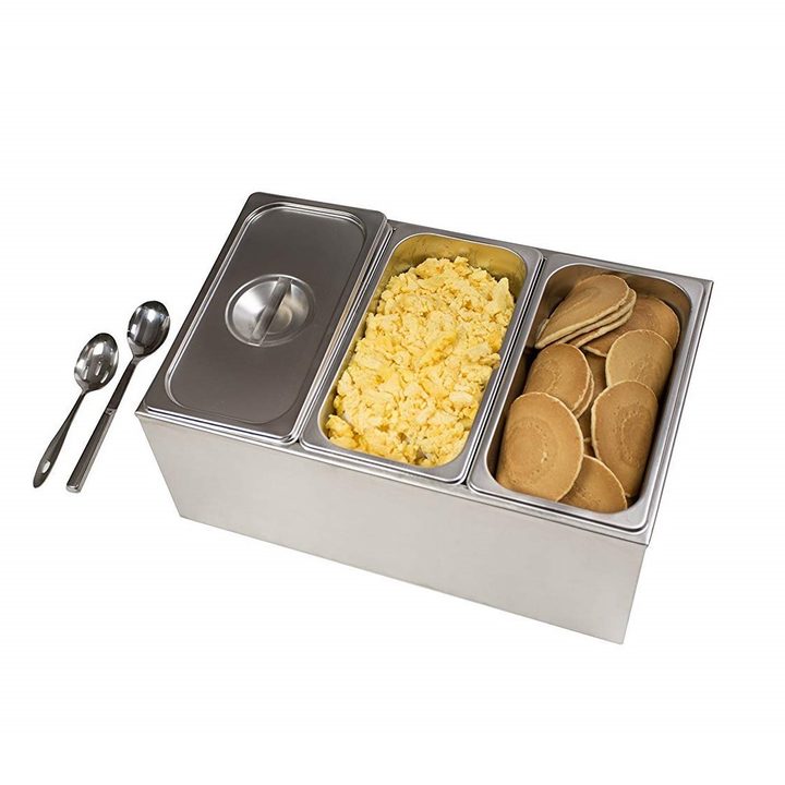 Buffets can be tricky because not everyone eats at the same time and, since the food is served over a period of time, it can overdry. Bain marie is an excellent method to keep the food warm while retaining its moisture and all of the delicious flavors.