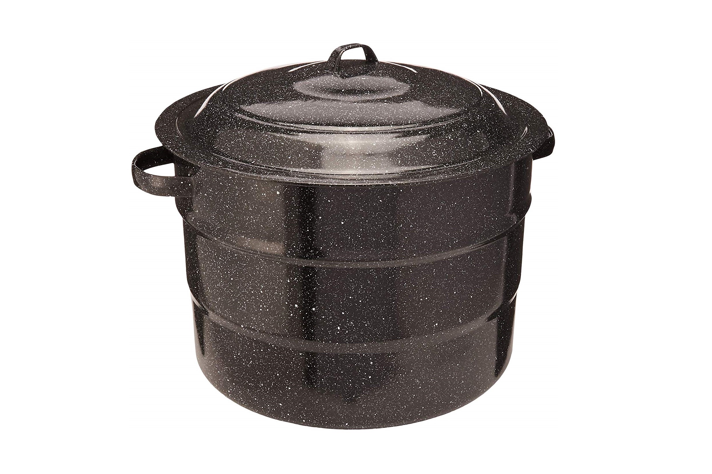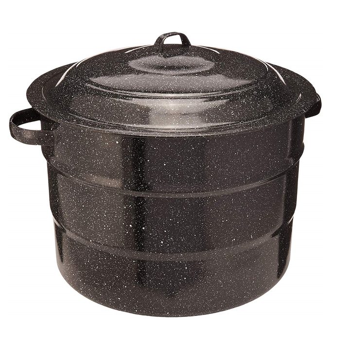 Kickstart your own brand of preserved goods at home with the Granite Ware Enamel-on-Steel Canning Kit. This water-bath canner is the ideal starter kit for jumping in right away. Featuring a stepped design that produces enough heat to kill all bacteria by allowing boiling water to be in contact with the top half of the jars, it’s ideal for canning fruits and acidic preserves.