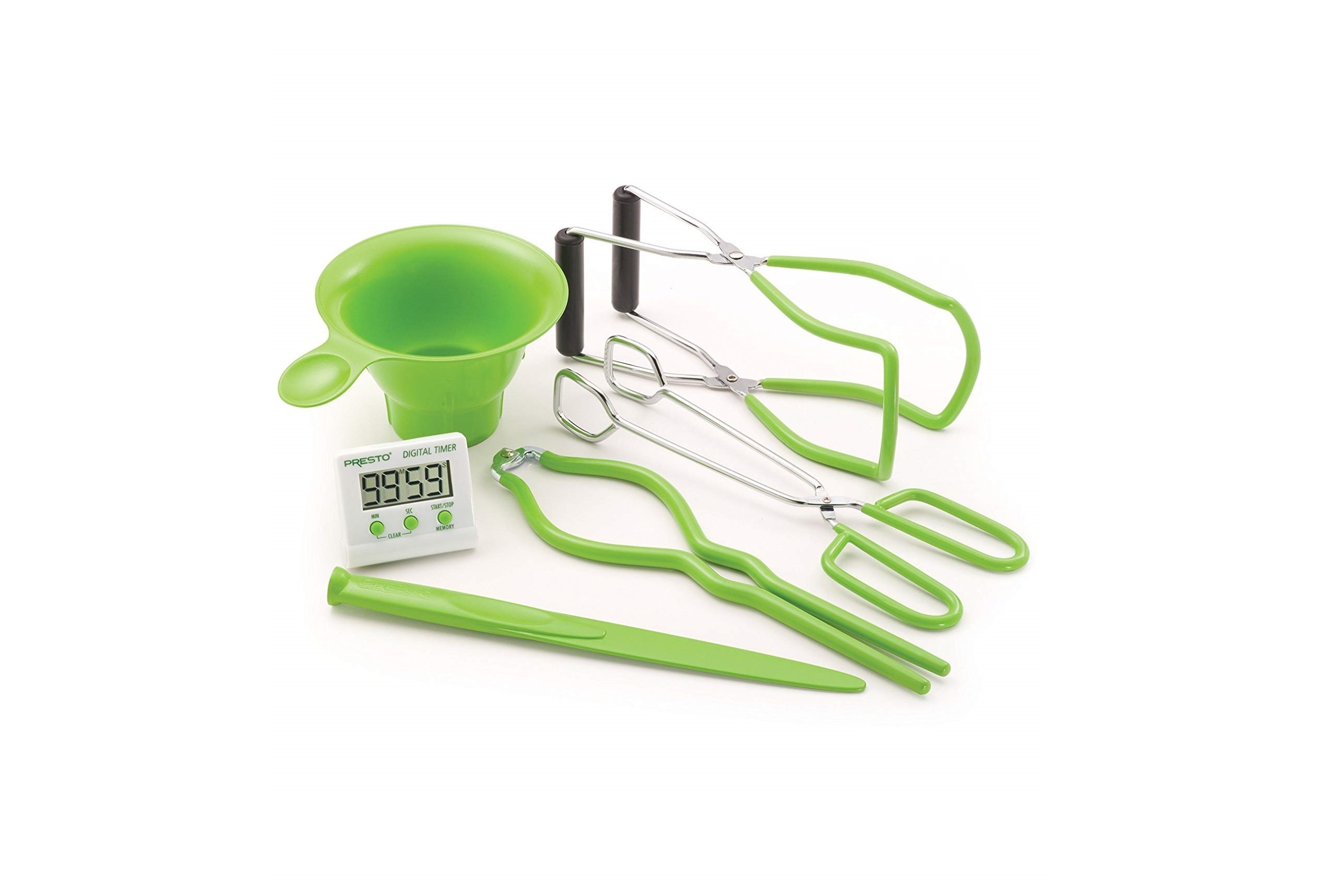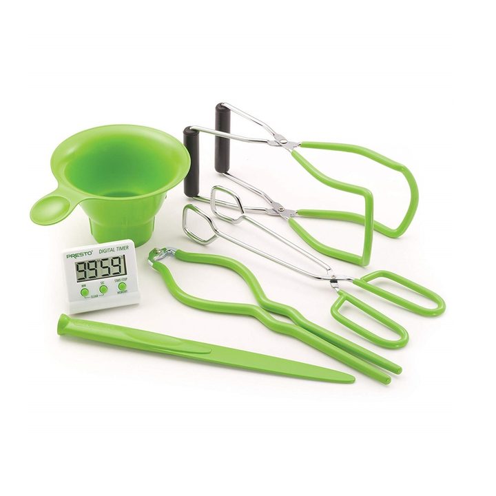 For the newcomer, the Presto 7 Function Canning Kit offers all the tools you need to handle your mason jars carefully and with ease. From a timer to a thermometer, including a funnel, handles, and lid opener, this complete set lets you get comfortable with all the basics of preserving food, using both water-bath canners and pressure canners alike.