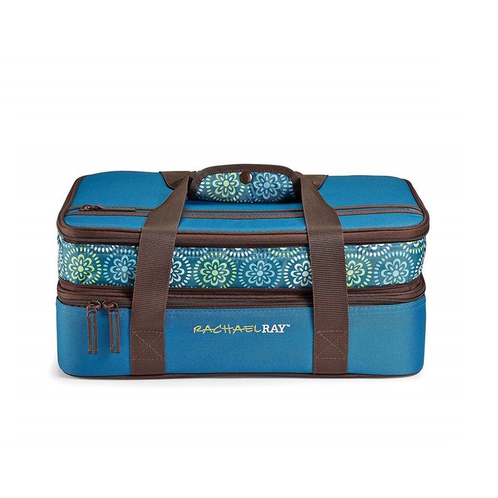 If you want enough space to carry casseroles to share with a big group, the Rachael Ray Expandable Casserole Carrier is a double capacity food lugger that holds two 9-by-13-inch baking dishes. Triple-Tek foam insulation and a Temperfoil lining create superior heat and cold retention to keep food at the desired temperature for hours. The leak-proof inlay protects from any spills or drips.