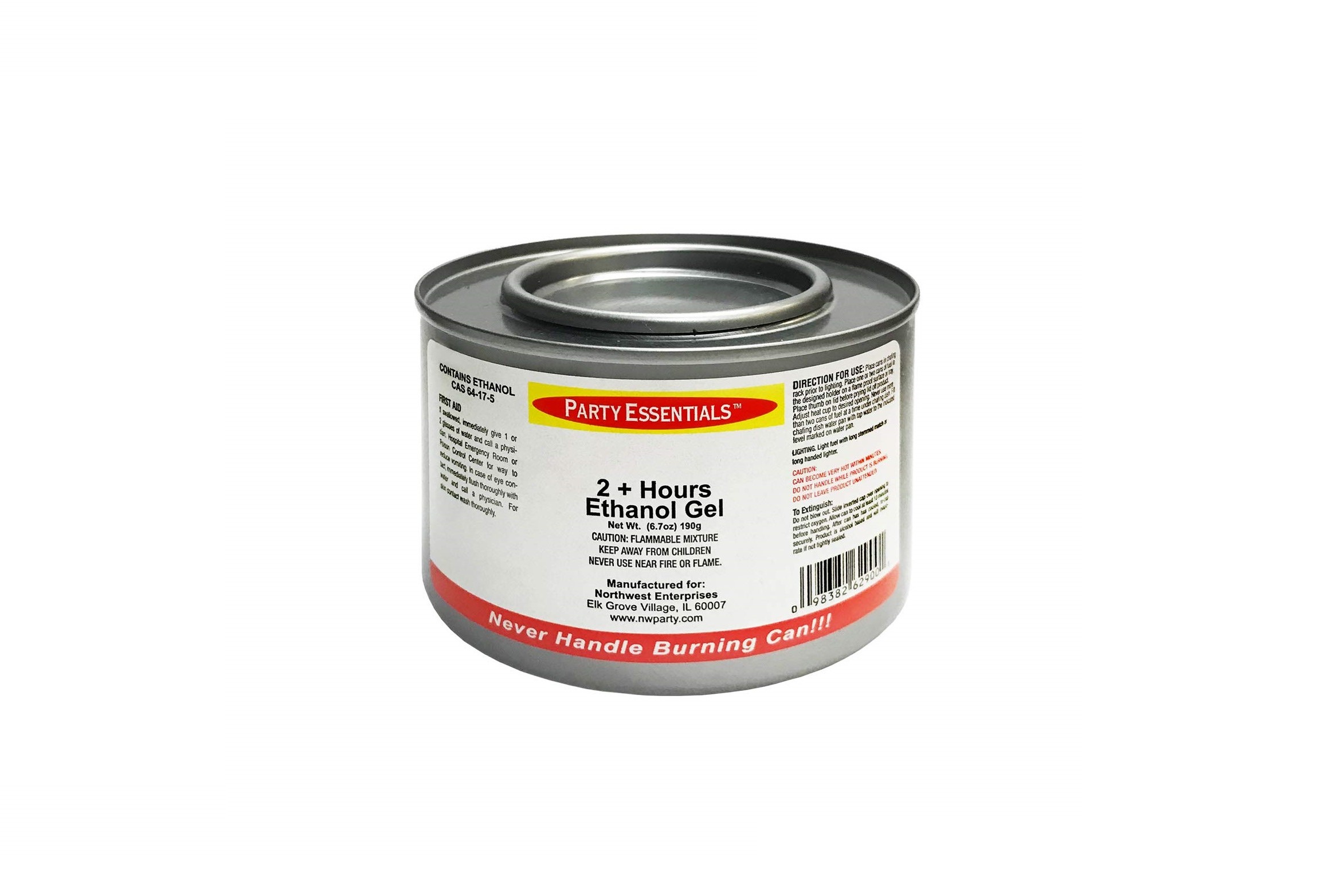 Get the most value out of the Party Essentials Chafing Fuel, a 12-pack of ethanol gel cans that burn for over two hours with the highest heat available for an incredible price. Keep hot foods ready during all of your special events with this jelled warming fuel. This nontoxic fuel burns clean and is odorless, and the cans are spill-resistant.