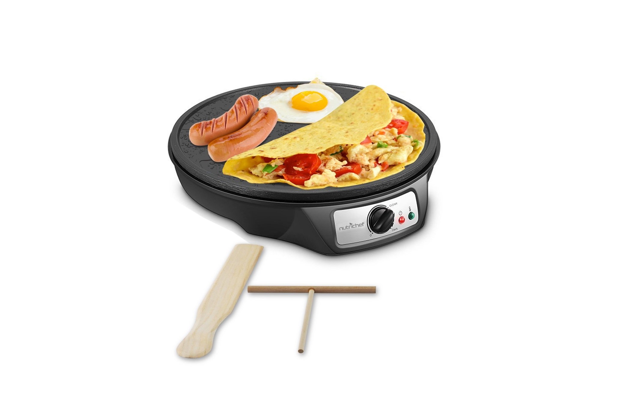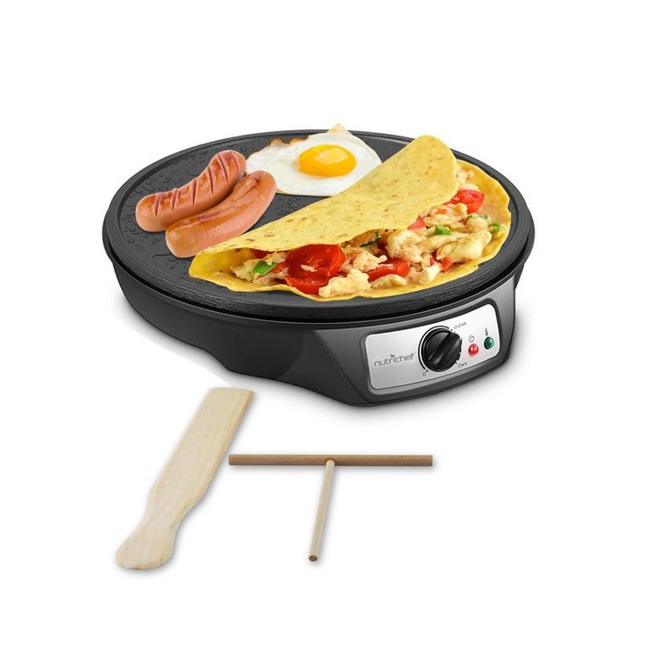 Unleash the power of 1200 watts with the heavy duty NutriChef Electric Crepe Maker. This hot plate works hard so you don’t have to and with 12 inches of cooking surface, the NutriChef Electric Crepe Maker makes it easy to spread, flip and enjoy the most delicious crepes you’ve ever made. Using the included spreader and spatula, you will finally be able to create the perfect crepes – just like professional chefs.