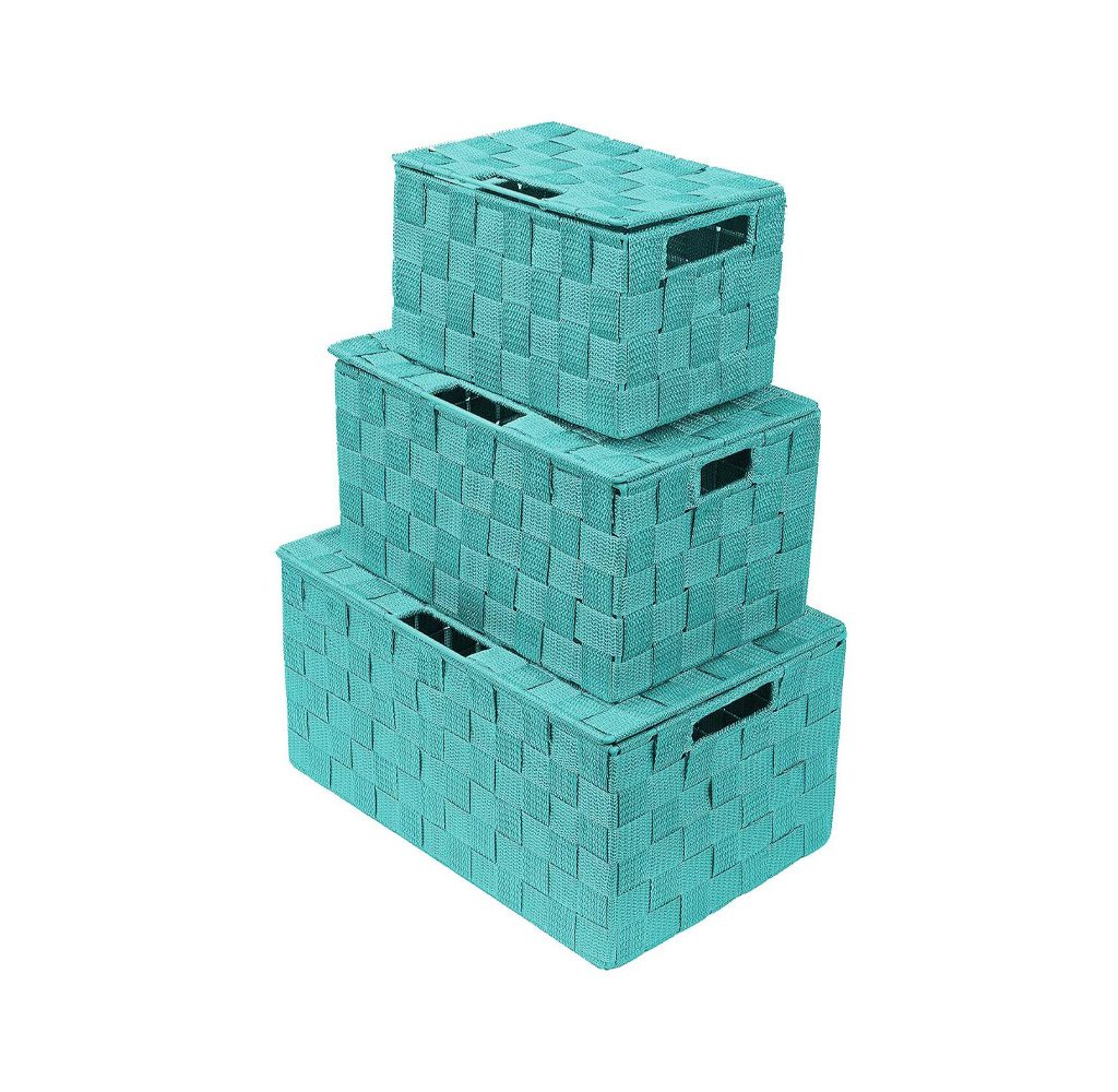 This woven three-piece basket set from Sorbus features a flip-up lid and long-lasting polypropylene ribbon held together by stainless steel. Easily stack the different-sized boxes whether in use or not. It’s versatile enough to place in any part of your house, but it would look best in a bathroom or bedroom thanks to its homey, woven design.