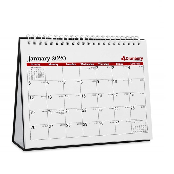 The Cranbury Small Desk Calendar has daily blocks of 1×3/4 inches, providing plenty of space for planning your appointments and to-do reminders. This size is loved by many for its compact footprint and portability. Its calendar pages are printed on both sides for convenient display on tabletop or desk. Constructed with thick paper and durable twin-wire binding, this desk calendar is built to last. The Cranbury Small Desk Calendar comes with 34 colorful reminder stickers to mark your events, special days, birthdays, meetings, deadlines, appointments, and more.