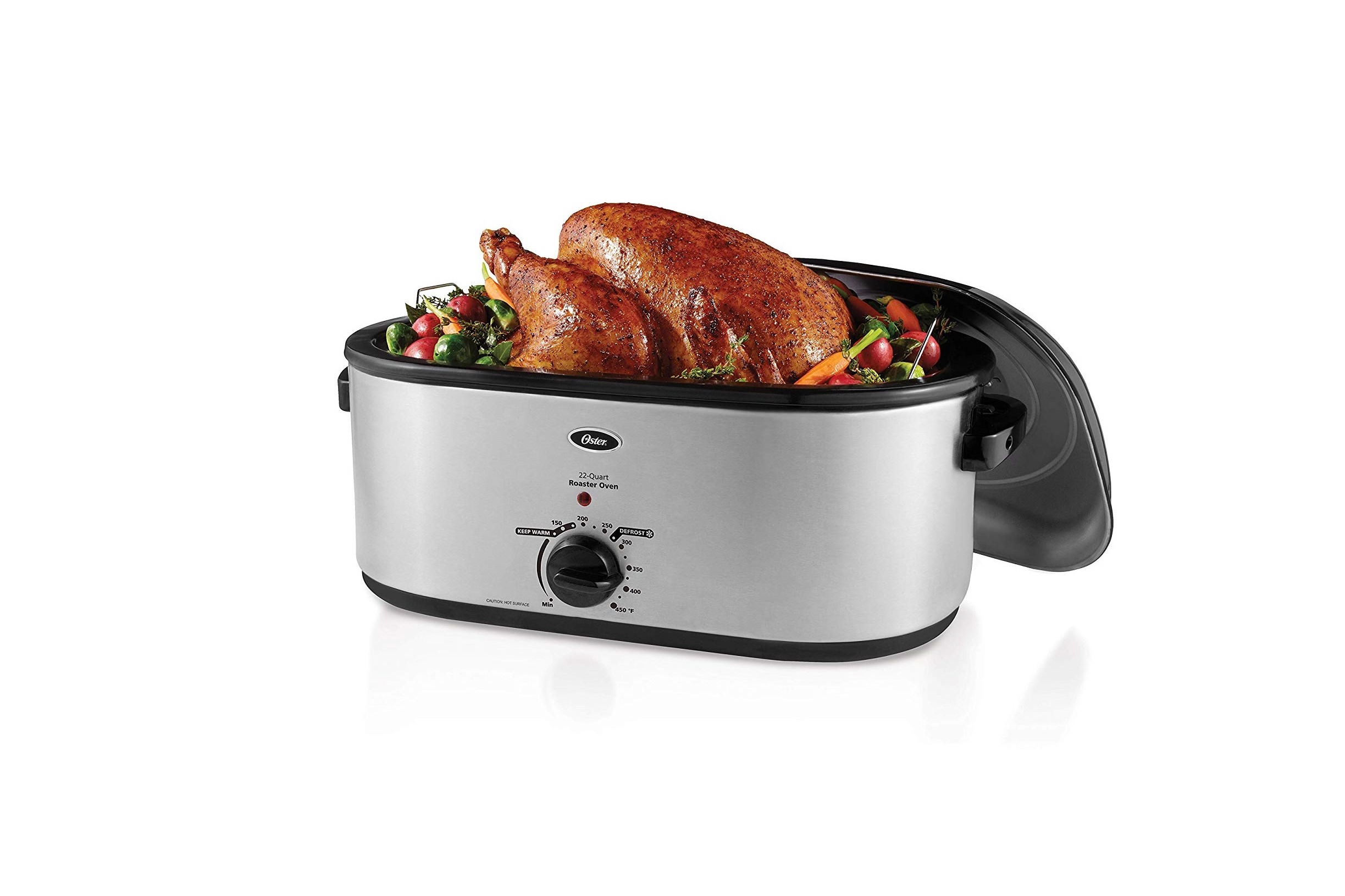 If entertaining is your passion, make your meals memorable and easy to create with the Oster Roaster Oven with Self-Basting Lid. This electric roaster accommodates turkeys up to 26 pounds thanks to its 22 quarters of capacity. The self-basting lid saves heat and energy while speeding up cooking time. Includes a removable rack and enamel-on-steel bottom pan for easy cleanup.