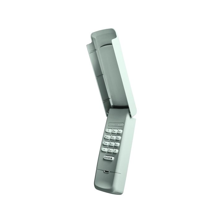 Genie makes one of the all-around best garage door keypads available. It prevents outside-frequency interference and can be mounted with included screws. A flip-up cover protects the keypad from outside elements and makes it more inconspicuous. Note that this keypad might be more appealing for users who have existing Genie keypads or openers. It’s the latest design in the Genie garage door keypad line.