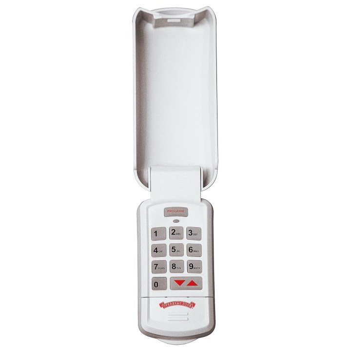 Overhead Door’s wireless garage keypad is the best outdoors option thanks to its weather-resistant plastic construction. The light-up buttons makes entry easy either during the day or night, and a low-battery alert ensures you won’t accidentally get stuck outside your home.