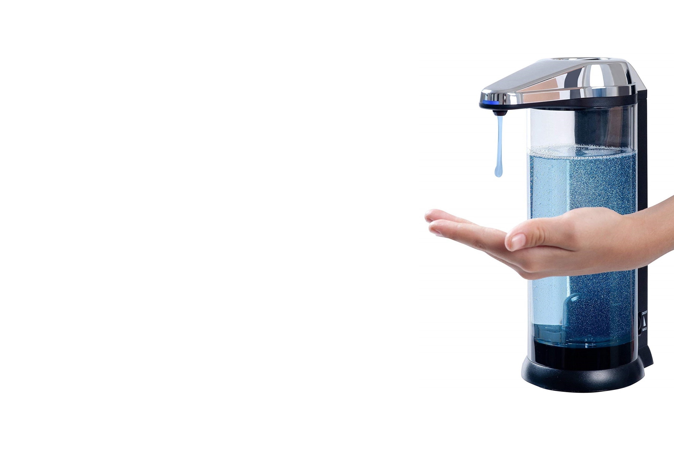 To promote hygiene, a touchless hand soap dispenser is the optimal choice. A solid pick is the Secura Touchless Automatic Soap Dispenser with an adjustable dispensing volume control dial. Its infrared sensor detects a hand from as far away as 2.75 inches. The dispenser can be wall mounted or placed on a countertop.