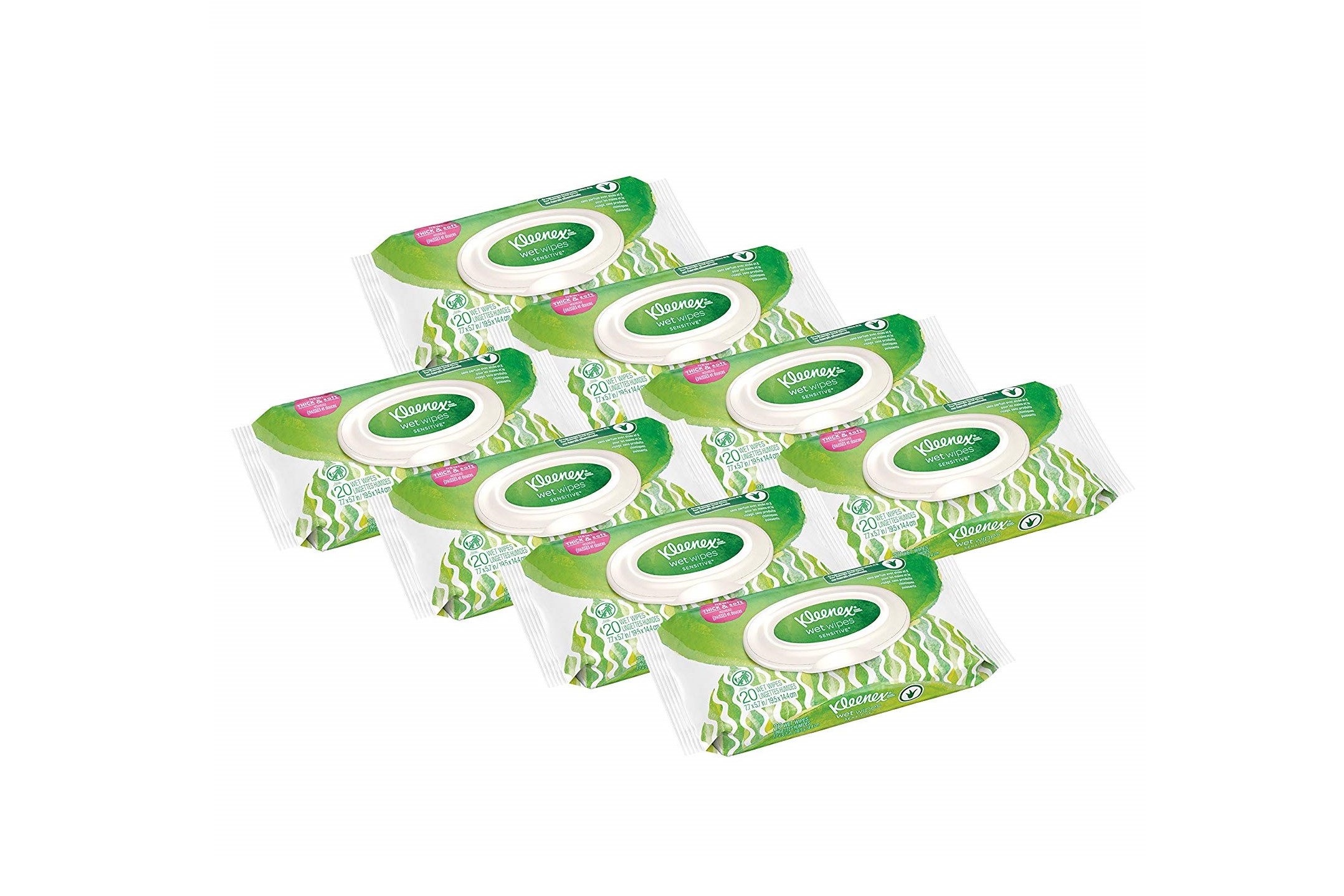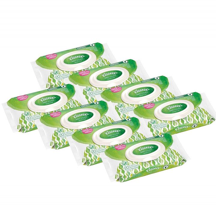 A solid overall choice is Kleenex Wet Wipes that are available in eight packs of 20 wipes. Fragrance-, alcohol-, and paraben-free, these Wet Wipes are clinically proven to remove 99% of germs from skin without any harsh chemicals.
