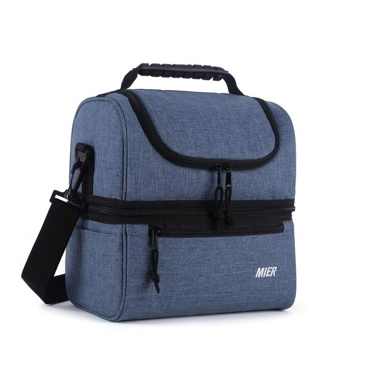 Keep your cold lunch items separate from the dry ones with the MIER Insulated Lunch Box. This double-decker lunch bag is easy to carry with a handle or shoulder strap, so you can easily transport your foods and keep them organized no matter where you go.