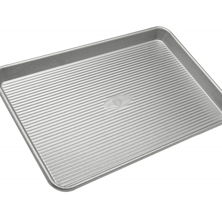 The USA Pan Jelly Roll Pan is a versatile product that never fails. Use this heavy-gauge sheet pan to make cookies, roast veggies or bake cakes. With high-end features such as corrugated surface and nonstick Americoat coating, this commercial-grade pan is one of the best investments you can make.