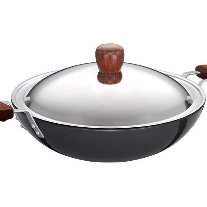 If you prepare food on an induction cooktop, the Futura Flat Bottom Kadhai with Lid is the best companion if you need to make every inch of your cooking space count. The specially designed flat bottom is perfect for stability, effective heat distribution and is made with top quality, hard-anodized metal. The stainless steel lid seals the flavors in and the rosewood handles allow for safe handling. The larger capacity of the pan makes it perfect for family cooking.