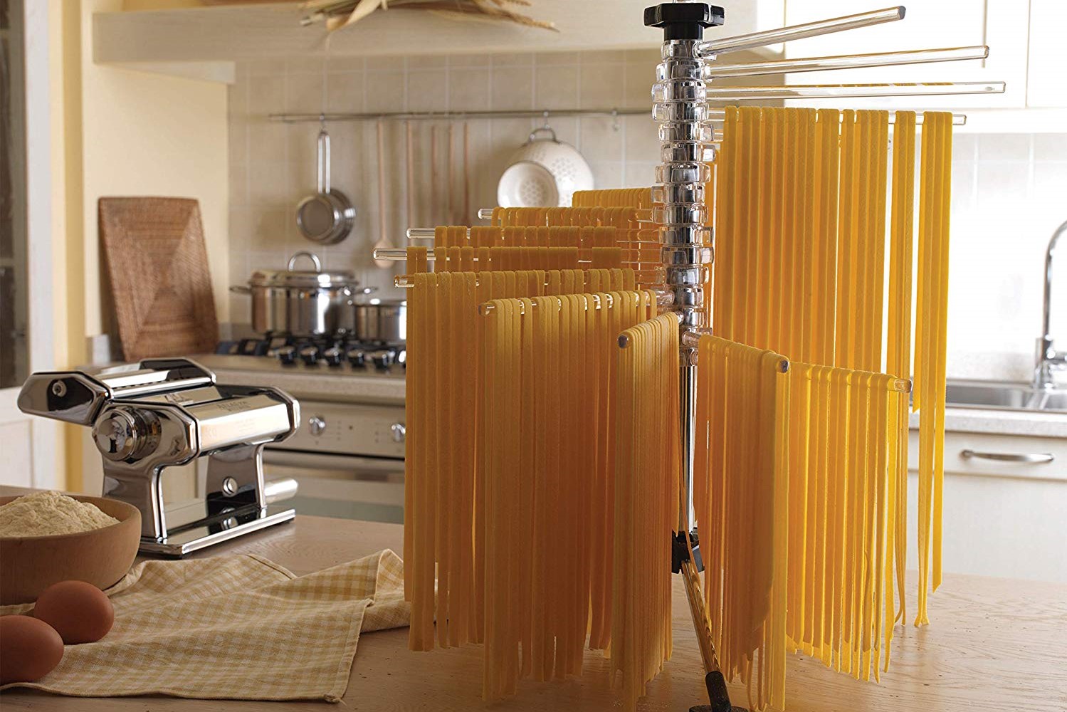 The history of homemade pasta dates back to the 12th century. Ancient Etruscans and Romans were the first to eat a form of lasagna, while nomadic Arabs first brought pasta to the Mediterranean from central Asia. This is actually where noodles may have originated. But Italy is certainly the place where pasta became one of the most famous dishes in the world. Pasta is one of those weeknight meal staples which parents and kids can both enjoy. Continue this rich culinary tradition with one of the fabulous pasta-drying racks that we have curated for you.