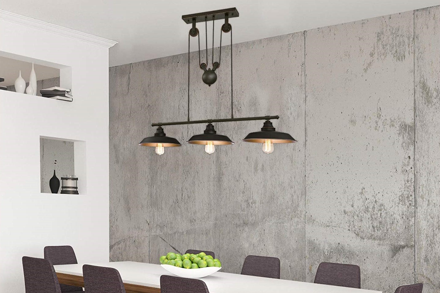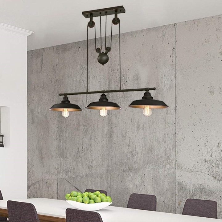 When a single light is not enough, the Westinghouse Lighting Iron Hill Pendant provides a 3-light solution with a rustic industrial look that feels contemporary and cool. Ideal for kitchens islands, this pendant light also looks stunning over pool tables, dining rooms or bar areas. With its pulley design, this impressive fixture brings a lot of personality to your home.