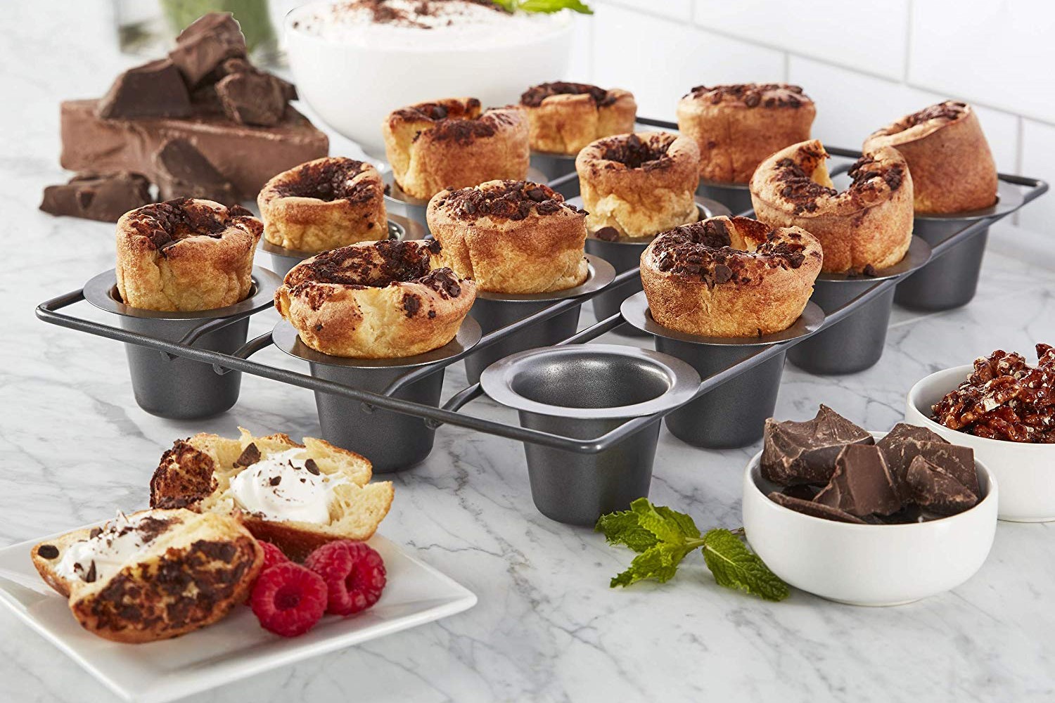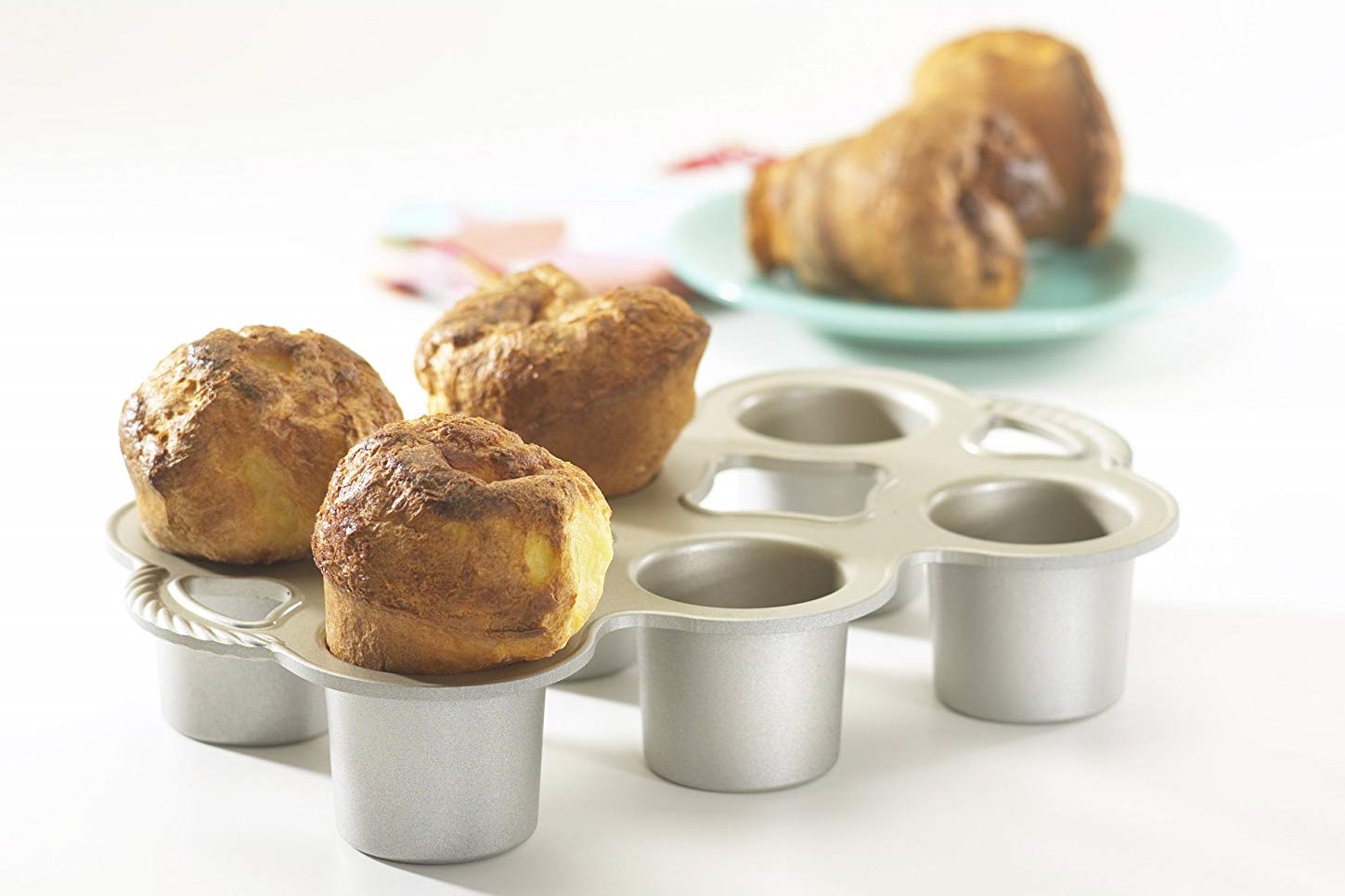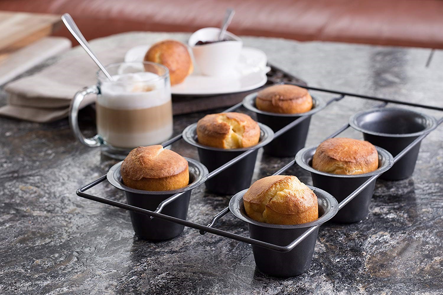 Regular muffin tins simply can’t make a perfect popover. This classic pastry requires just the right heat circulation to inflate and pop over without overcrowding. Popover pans are distinguished from regular muffin tins by their deep, steep-sided wells. This forces the batter upward and results in a popover with a puffy dome and crispy sides.