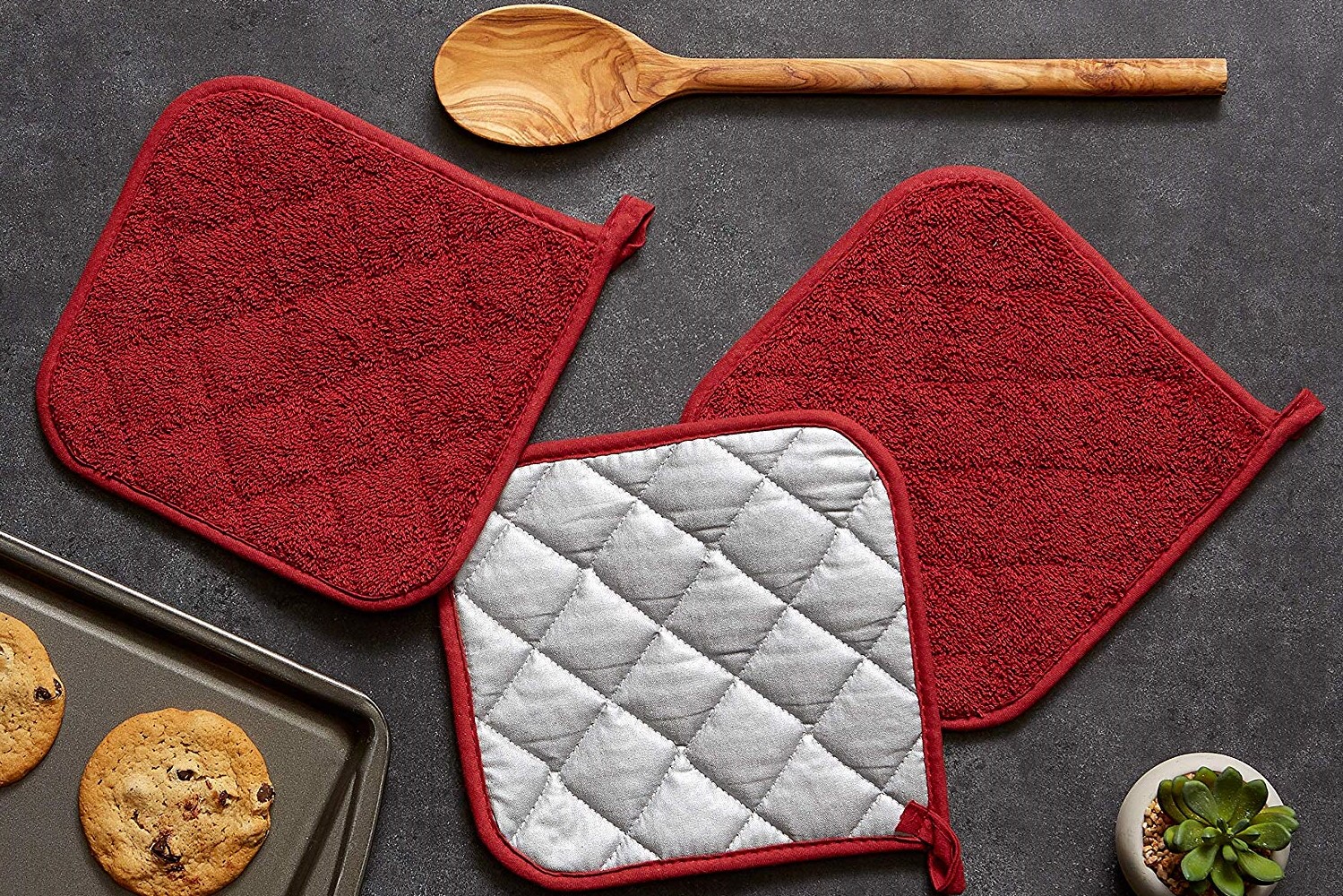 For a classic look and proven performance, the Ritz Royale Collection Pot Holder is a set of two Terry Cloth hot pads that are versatile and 100% cotton for easy washing. You can use them as pocket oven mitts and be sure they will protect you from hot surfaces. Available in multiple colors to match your kitchen style