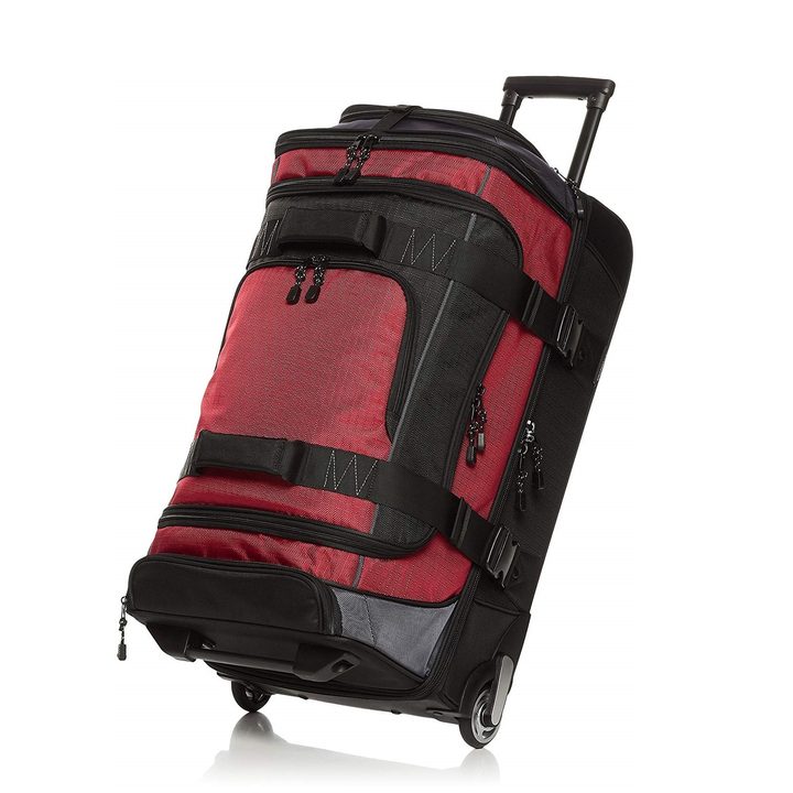 With a standard classic design and incredibly resistant material, the AmazonBasics Ripstop Rolling Wheeled Duffel Bag is one of our favorites. You can fit everything you need for a whole week if you are an organization pro or a full weekend if you just throw everything in there. This is the perfect no-frills solution for those who just want a reliable bag that won’t show up ripped at the airport terminal.