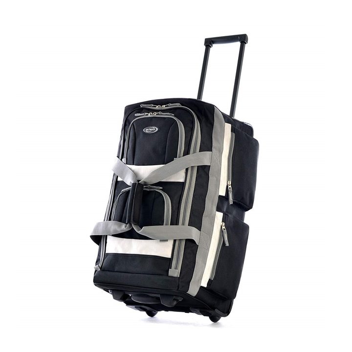 Get the most bang for your buck with the Olympia 8 Pocket Rolling Duffel Bag, a big-value product that has many high-end features for an entry-level price. Eight different pockets make organizing and packing incredibly easy for you. The retractable handle is one of the best on the market, and the reinforced frame makes sure that your bag doesn’t deform while giving you that natural stretch you need to fit all of your stuff.