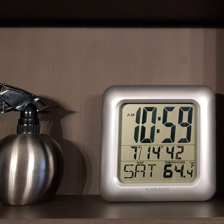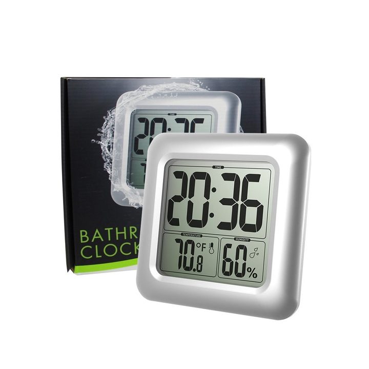 It doesn’t hurt to know what the date is along with the time in a shower. To that effect, a good shower clock with a date function is the KADAMS Digital Shower Wall Clock. The waterproof clock offers a readout with the month, day, and temperature along with a large time display.