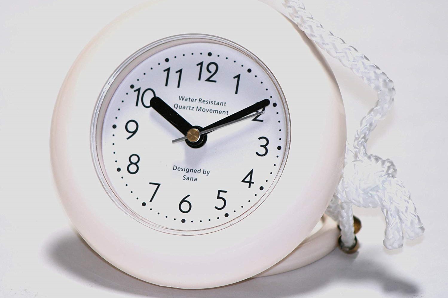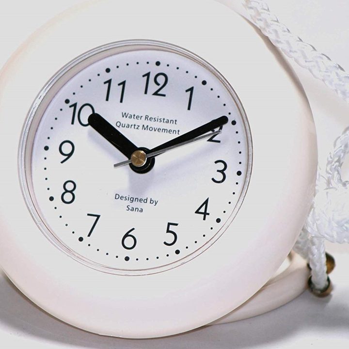 To read time easier in a shower, perhaps an analog clock is a better option than a digital one. Sana Enterprises offers a leading analog shower clock featuring an easy-to-read face. The water-resistant clock is engineered with quartz movement and a turning second hand for more accurate timekeeping.
