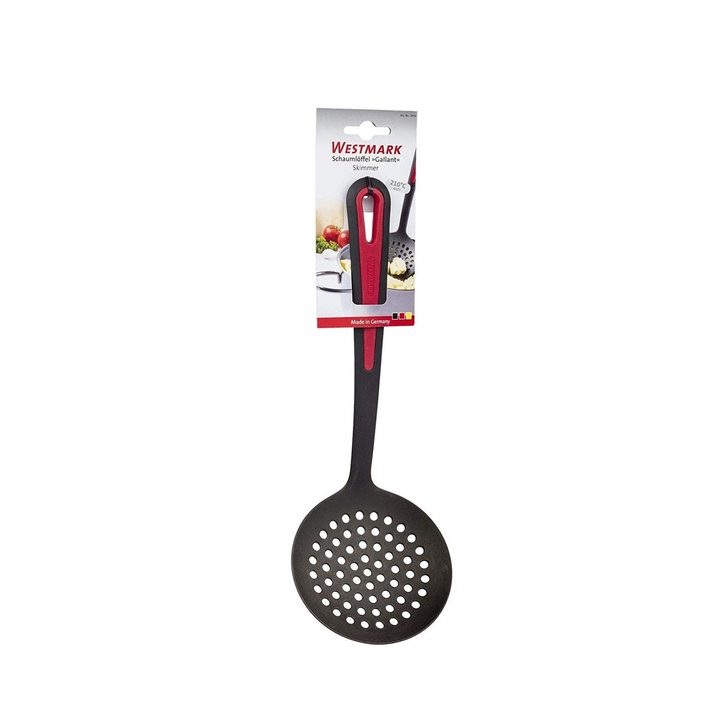 The Westmark Germany Skimmer is made from heat resistant, nonstick polyamide material to safely scoop foods and avoid sticky messes. Keep your delicate dishes intact and also protect your hands with this spoon’s thermoplastic elastomeric handle that is ergonomic and comfortable to handle. This modern tool is an excellent addition to any kitchen and a helpful utensil for all cooks.