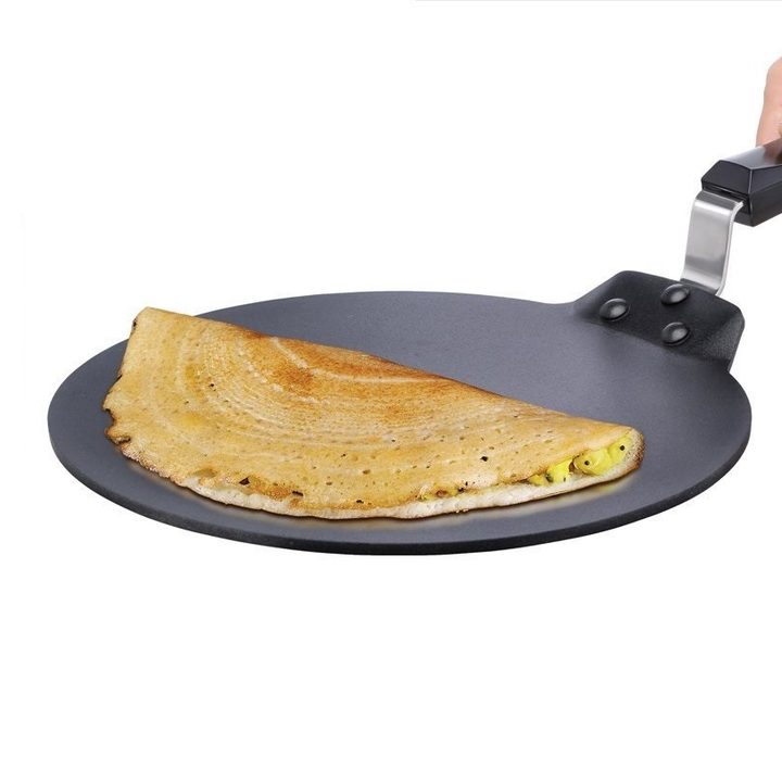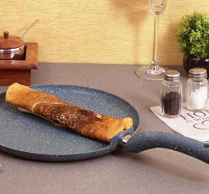 For those who prefer stoneware for their cooking, the Wonderchef Granite Dosa Tawa offers clean materials and heavy-duty performance. This incredibly useful flat griddle has a slightly curved end to help when frying. It is coated with a five-layer nonstick finish and is made of high-grade quality aluminum for even heat distribution. One of the best Indian flat griddles in the market.