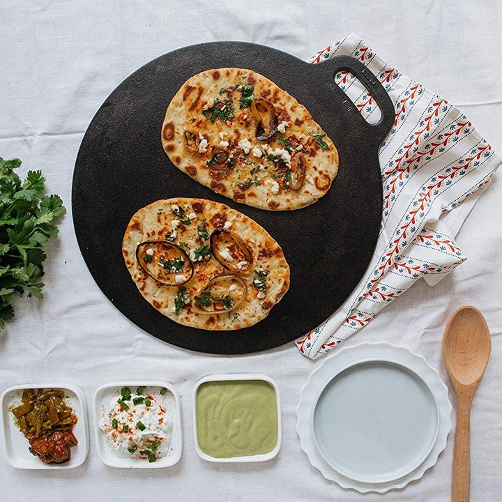 The kitchen purists will say that there is no better option than the Victoria Cast Iron Tawa. This sturdy and versatile griddle is a solid 15-inch tawa that will be passed on to the next generation. The one-piece construction maximizes cooking area, and the high-quality cast iron generates high-power cooking heat for broiling, frying, and roasting.