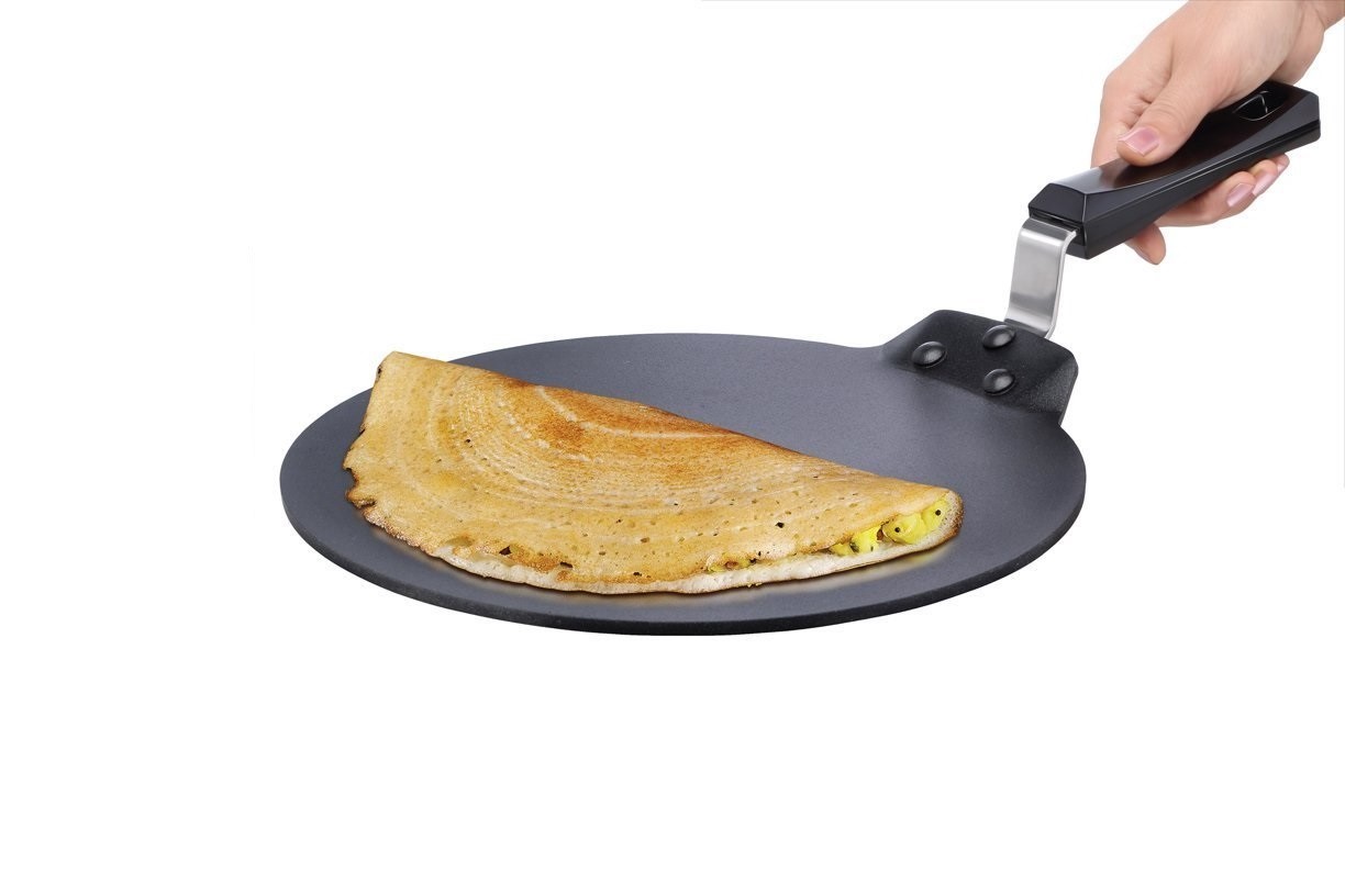 For those ready to jump right in, the Hawkins Futura Non-stick Tava has been one of the top choices thanks to the nonstick coating in addition to its unique and fast heat diffusion. A sturdy, always-cool handle makes it easy to control and move. With a perfect curvature and thickness, you can cook your dosa perfectly.