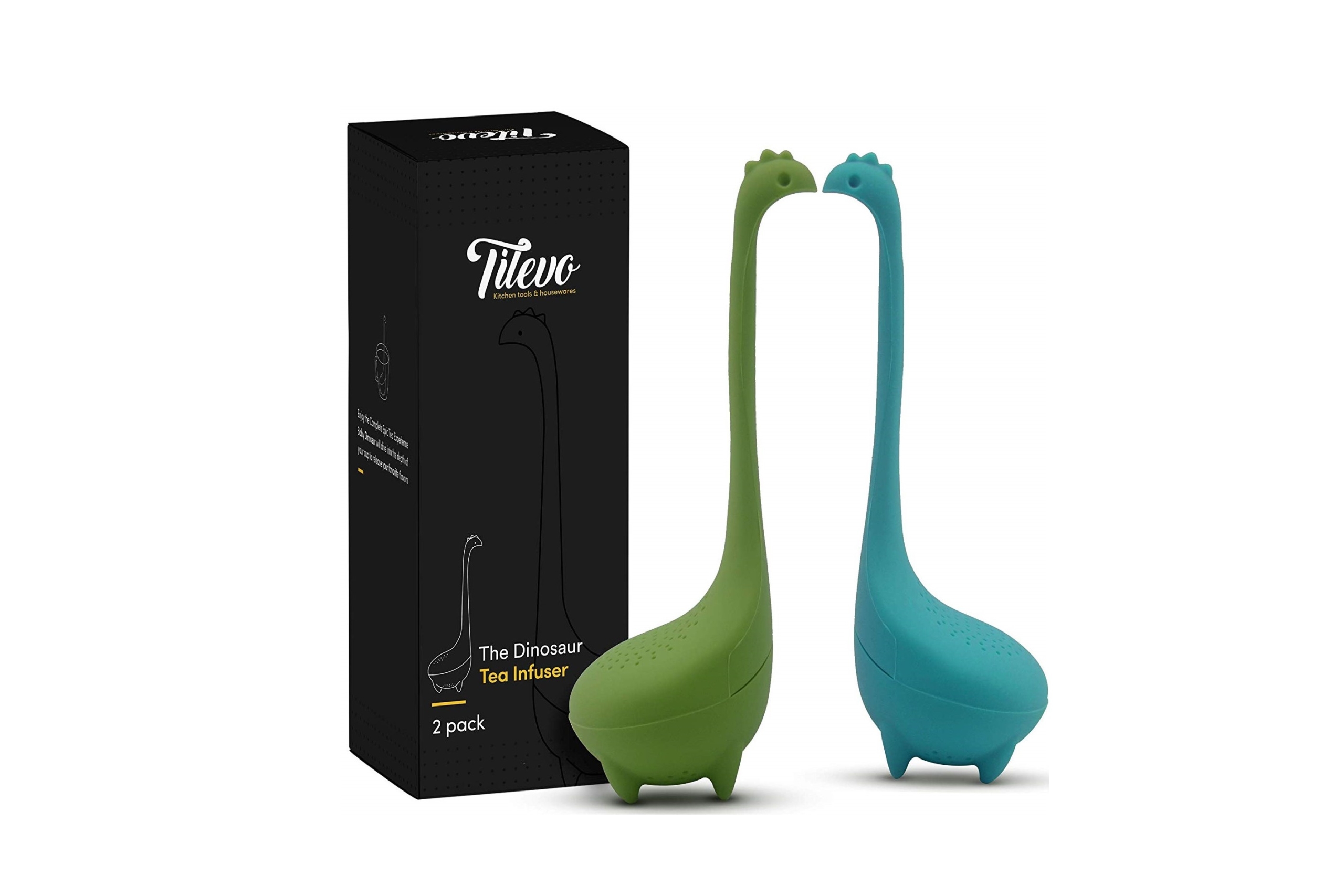 For the whimsical tea drinker, the Tilevo dinosaur-shaped Loose Leaf Tea Infusers are made from silicone that is dishwasher safe and are presented in a cute gift box, making it the perfect tea lover gift. Simply fill the dinosaur’s bottom half with the tea of your choice, give the top a quick push to the bottom and let it steep. The neck will form to your style of cup and will stand at the bottom of the cup or hang on the edge of taller cups.