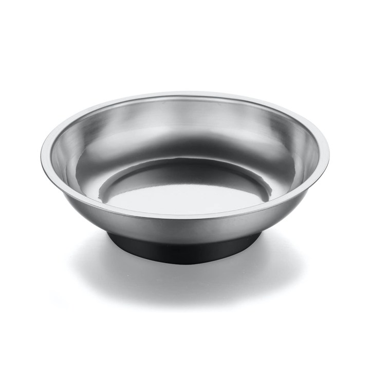Jsbrothers’ tool tray is best for containing small hardware like screws, nuts, and bolts. It features a stainless steel-bowl design that is 4 inches in diameter and 1 inch deep. The heavy-duty neodymium magnet means you can mount the bowl horizontally or vertically on a metal surface without worrying about losing small parts.