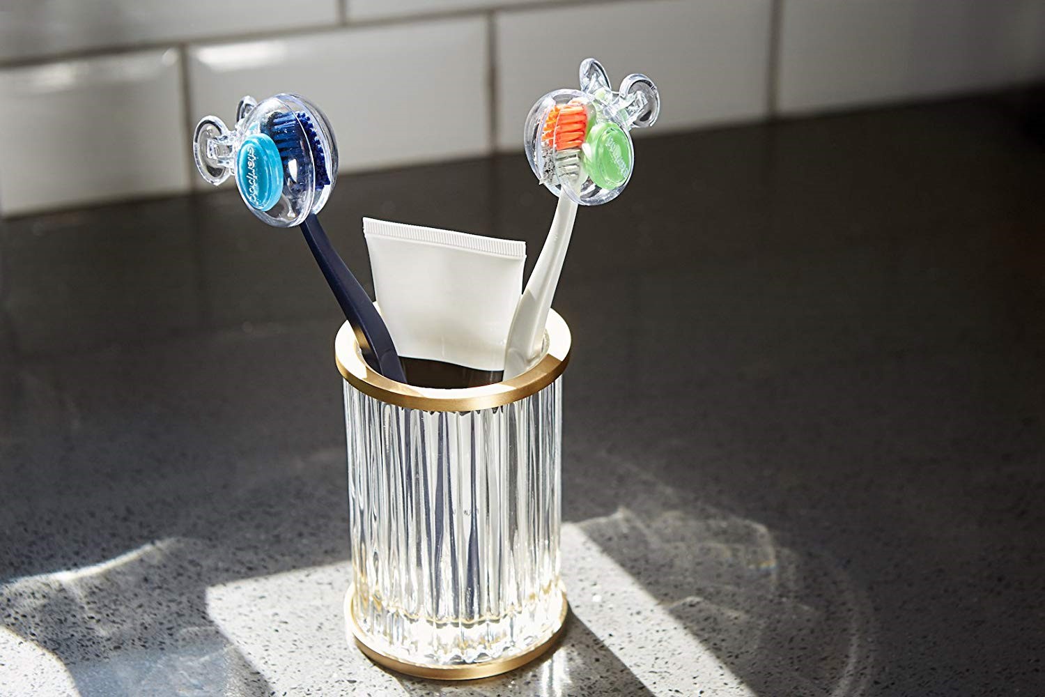 What’s a desirable toothbrush cover for kids? How about covers that resemble animals? The Dentek Animal Toothbrush Cover comes in a pack of four, with fun shapes depicting a bear, dog, cat and turtle. Entertain your little one while keeping them safe from harmful bacteria with this fun option. Designed to open easily and close securely, the cover features a suction cup on its back to easily attach to a mirror or glass for more convenient storage.