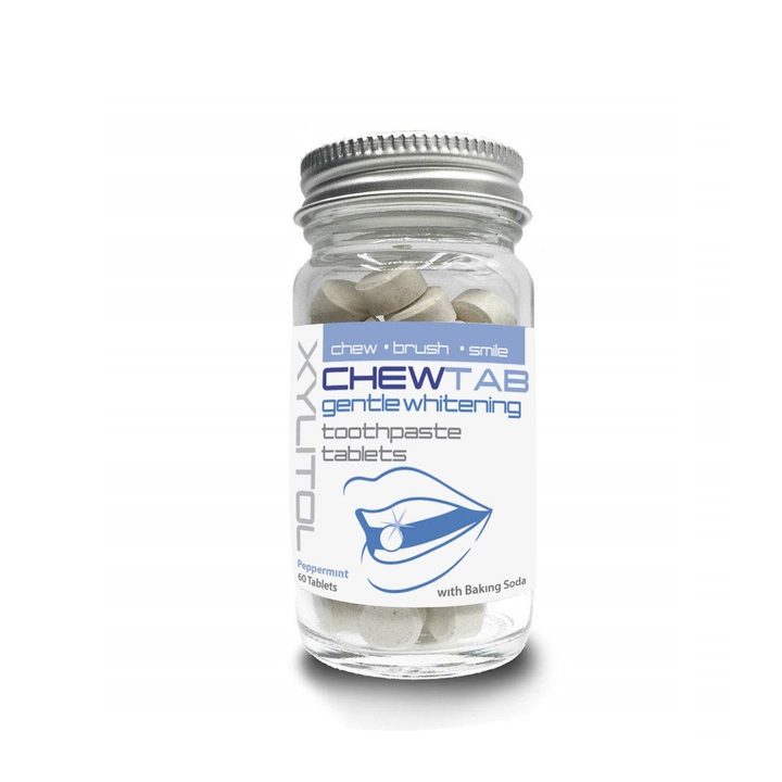 Chewtab toothpaste tablets use baking soda, which is effective at removing surface stains with an extremely low abrasion rate. Baking soda creates alkalinity that helps remove stains, whiten teeth, and strengthen enamel.