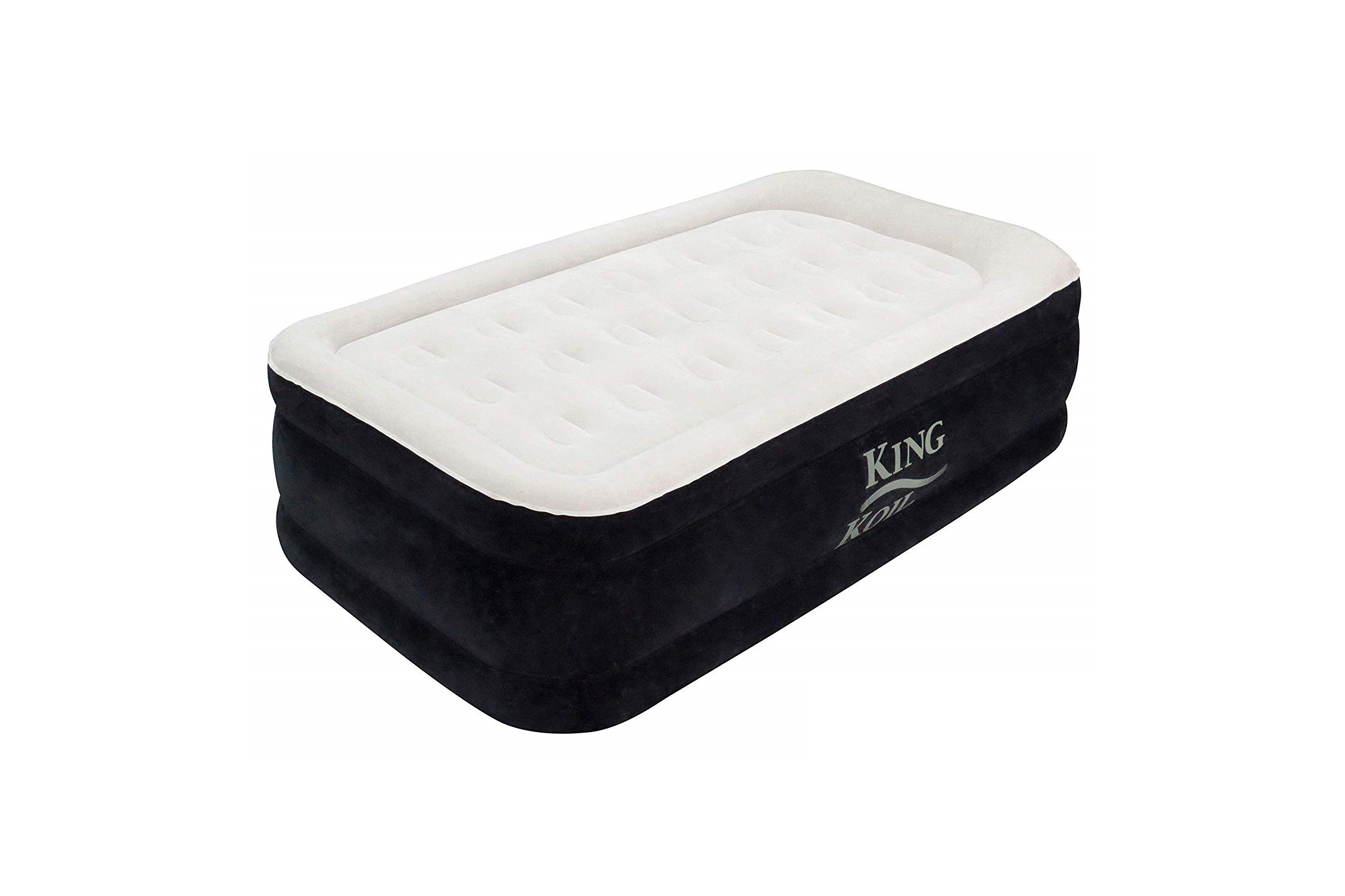 The King Koil Twin Air Mattress with Built-in Pump is a top-quality double-high elevated airbed with an extra thick quilt top made of waterproof materials that provides incredible spinal support and healthy sleeping posture. Thanks to the internal pump, you can go from tired and deflated to fully functional and resting in 90 seconds.