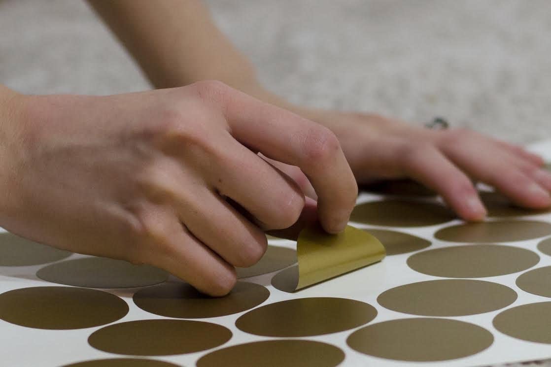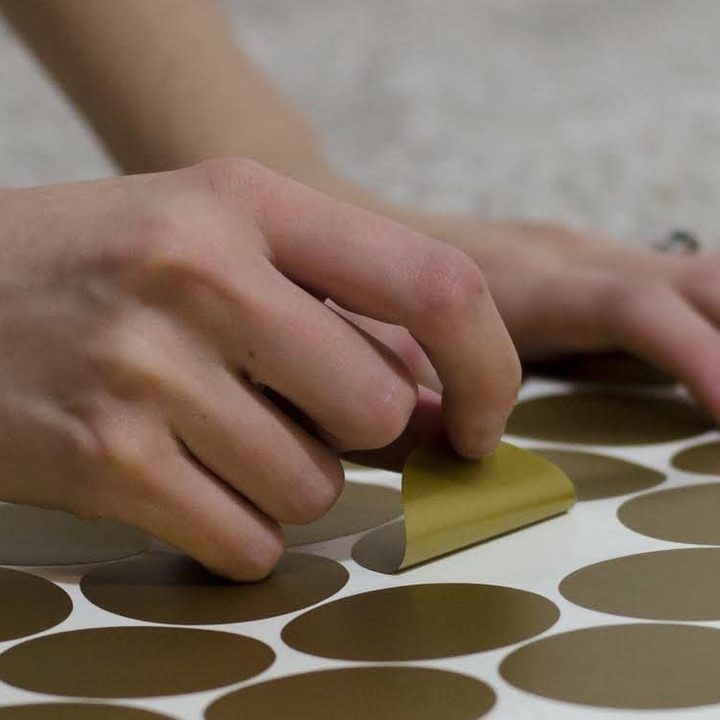 Simple yet impactful, The Open Canvas golden polka dot decal set is ideal for playrooms that need a patterned accent. It works on painted walls or drywalls, so it is compatible with most surfaces. A matte finish delivers a metallic shine to help complete a vibrant wall. One pack includes 200 dots.