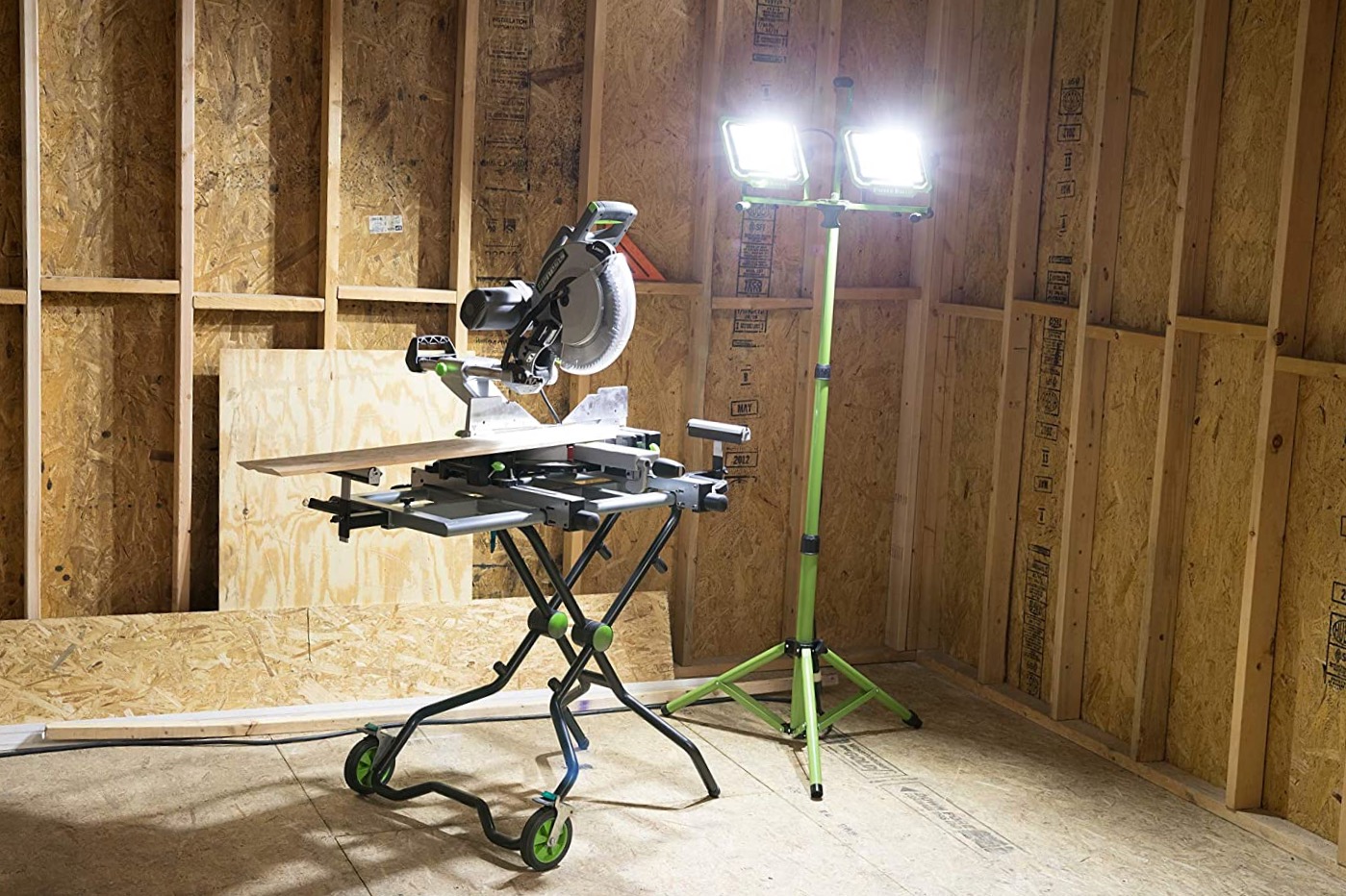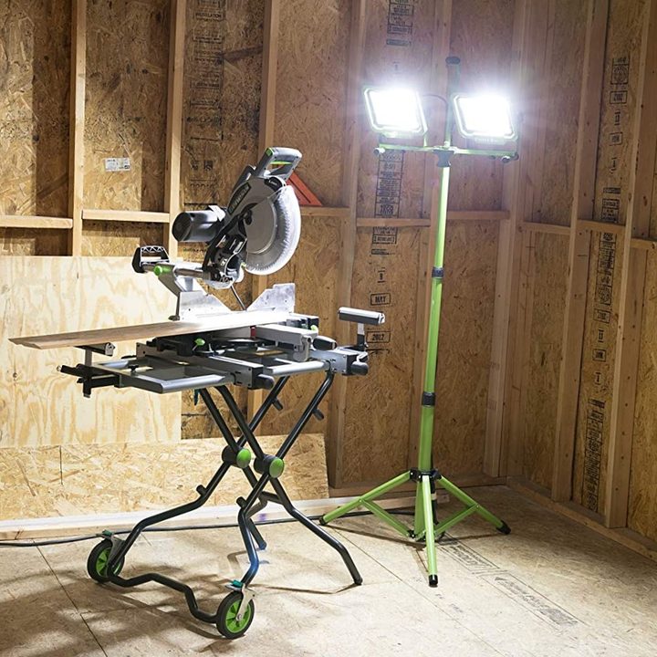 The PowerSmith 10000 lumen work light is suitable for extremely dark workplaces like basements or rural outdoors. A tripod stand, dual lamp heads, and a 9-foot cord ensure that this keeps up in the most-difficult work conditions.