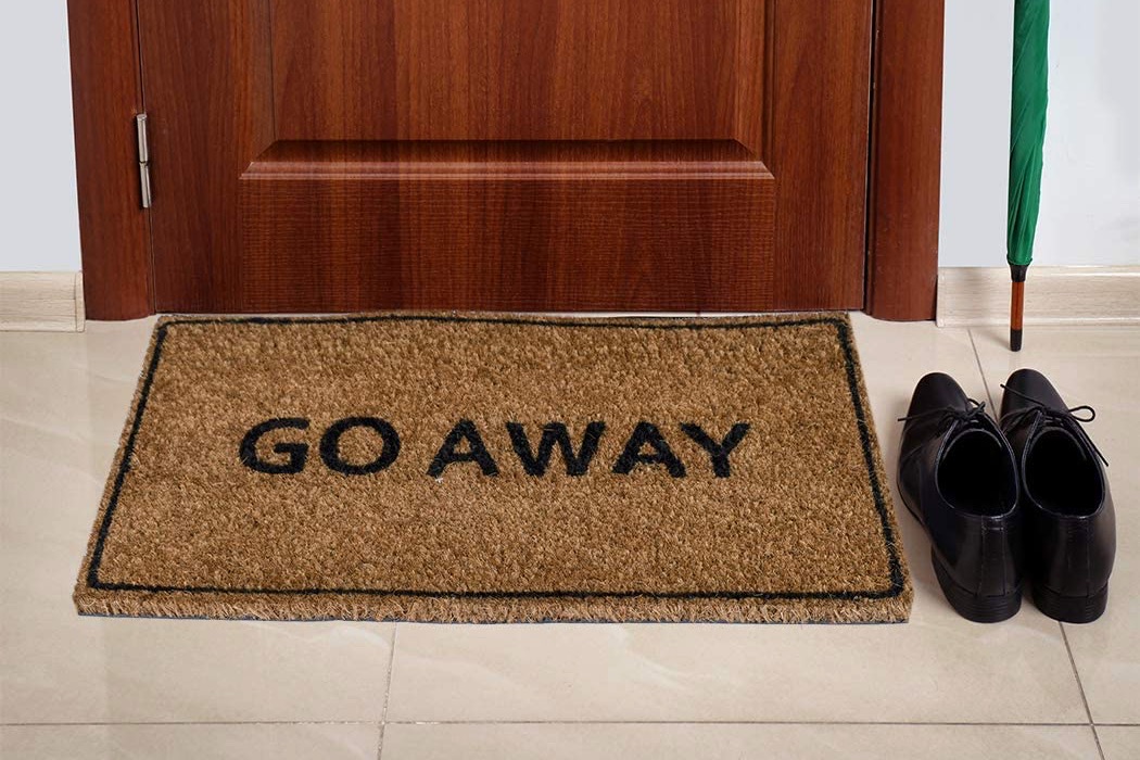 Sometimes, jokes are hilarious because they’re true. The Ninamar Go Away Doormat is a funny mat designed for the antisocial. Made from natural coconut fibers, this traditional coir mat is imprinted with ink for a durable message that will make your friends laugh.