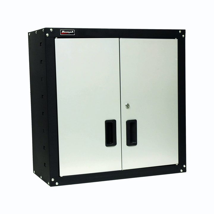 For those who prefer wall-mounted storage, the Homak 2 Door Wall Cabinet offers a double-shelf design that is easy to mount thanks to the pre-drilled holes and included hardware. It features locking doors and can be combined with other units to create an expansive storage array.