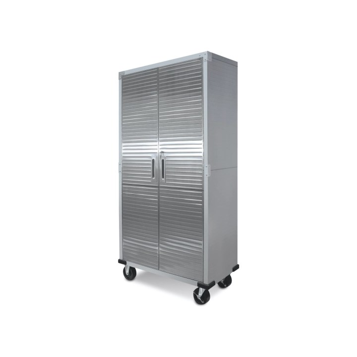 The UltraHD Tall Storage Cabinet is the premium solution to your organizing needs. With a weight capacity of 600 pounds total, four wheels for easy repositioning, and a powder-coated steel frame, you can rely on this cabinet to hold up all your gear safely.