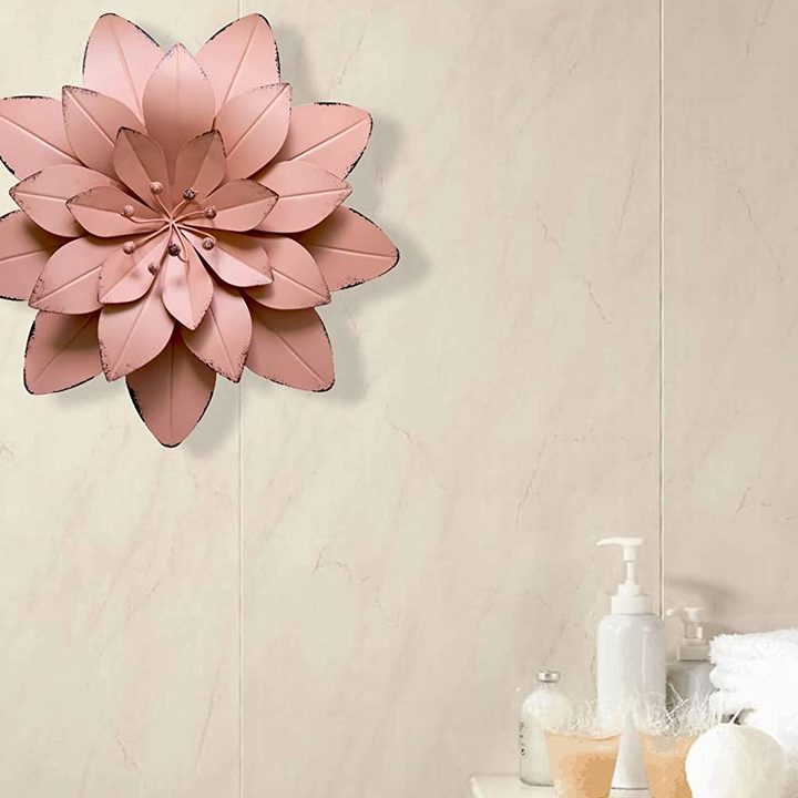 For a livelier bathroom, check out GIFTME 5’s light blue metal flower art. Made of lightweight, molded metal, this accent arrives ready to hang with no assembly required. The two-layer flower measures 13.5 inches by 2.5 inches.