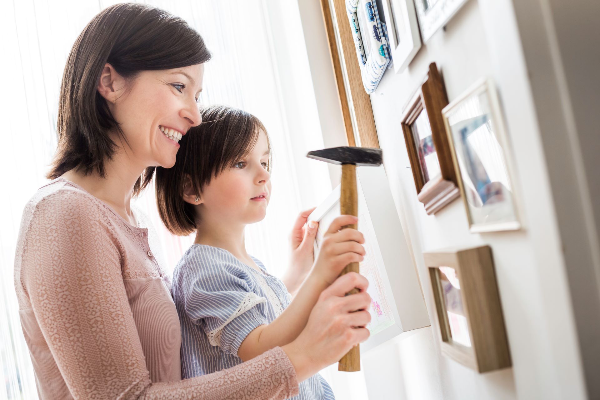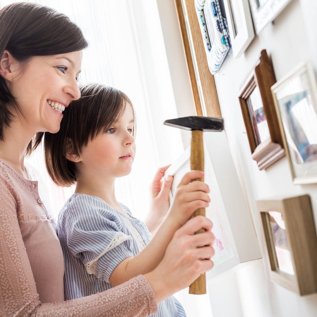You can also hang up a few picture ledges and place framed pieces along them. This offers a nice variation on hanging pictures, allows you to showcase pictures that normally sit low, and is pleasing to the eye.