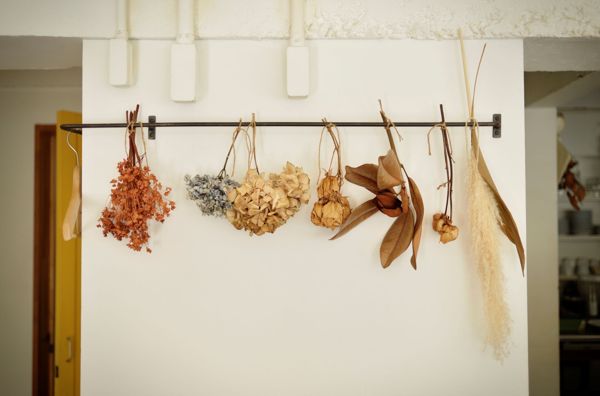 If you regularly receive bouquets of flowers or buy them for yourself –hey, there’s no shame in that– you’ll be in good shape when it’s time to coordinate your dried flower area of your wall. Make sure you hang your bouquet upside down, tied gently from a sturdy curtain rod or hook, as it begins to wilt. This will make sure it ends up in the right position as it dries. Throw in some dried herbs, both for scent and appearance, in a range of colors, and this could be the prettiest part of your home. SFGate says, “Dried flowers can be used to accent wreaths, or made into their own arrangements in vases or baskets.”