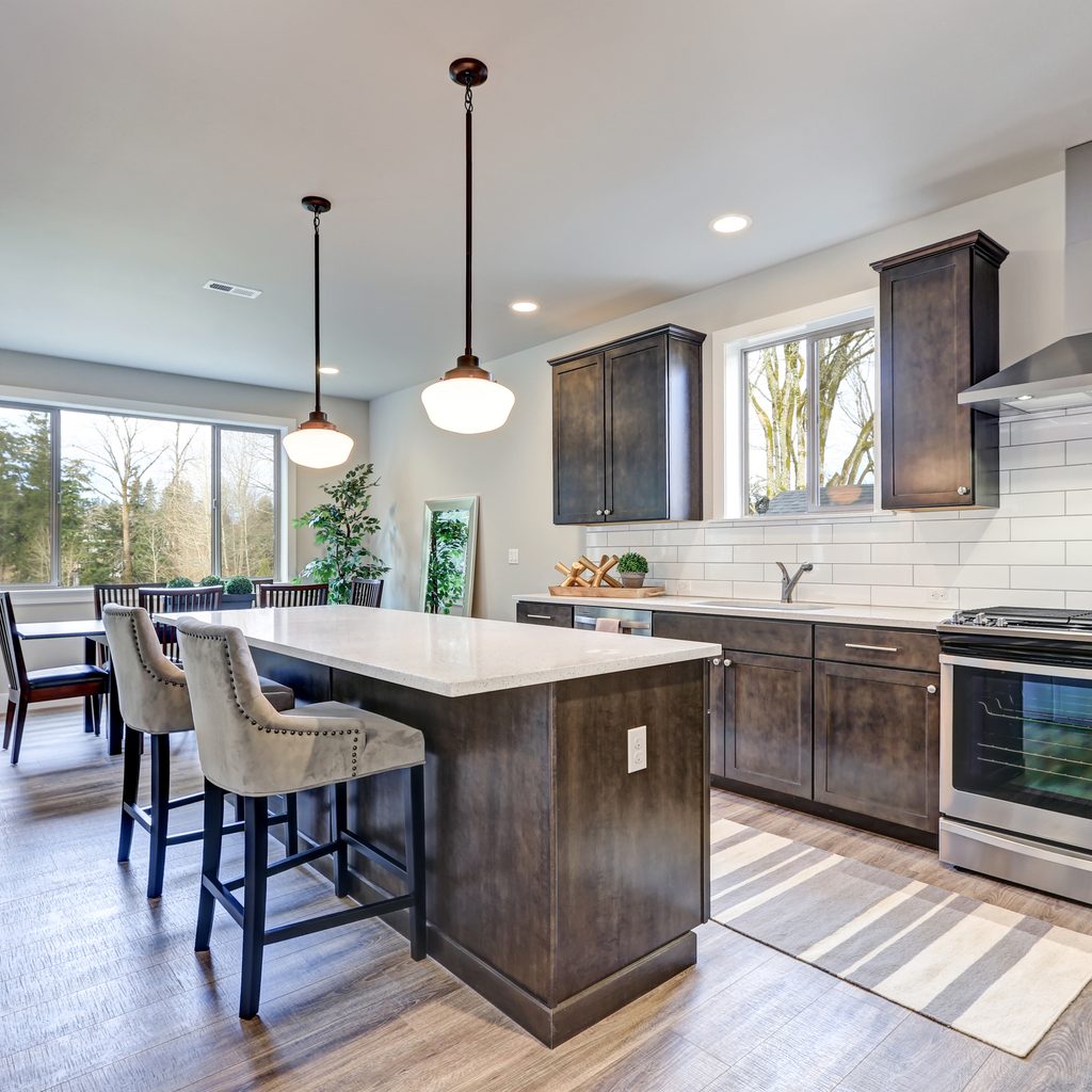 Subway tiles have been in style for kitchen backsplashes for years, but these days homeowners are looking for a bit of a different look while still reaping the benefits of the design and function that subway tiles bring. Traditional subway tiles are 3 x 6 inches, but we’re now seeing tiles that measure 4 x 8 or even 4 x 12 inches. These large tiles look great in a ceiling-height application, too.