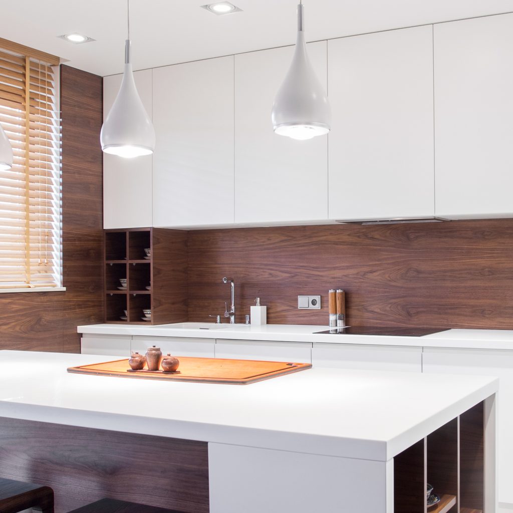 Traditional kitchen backsplashes are made of some sort of tile, but if you’re looking for something unique, alternative backsplash materials are the way to go. Consider metal sheet backsplashes made of stainless steel, copper, zinc, or aluminum. Even wood backsplashes such as shiplap or beadboard can work. Of course, you’ll need the proper finish on the material to protect it from the abuse it will withstand.