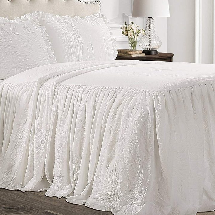 Romance and class have never looked better than with the Lush Décor Ruffle Skirt Bedspread. This shabby chic, 3-piece set is all you need to create an elegant atmosphere in your refined and graceful bedroom. Use alone for lightweight bedding or layer with other blankets for the right amount of comfort and charm.