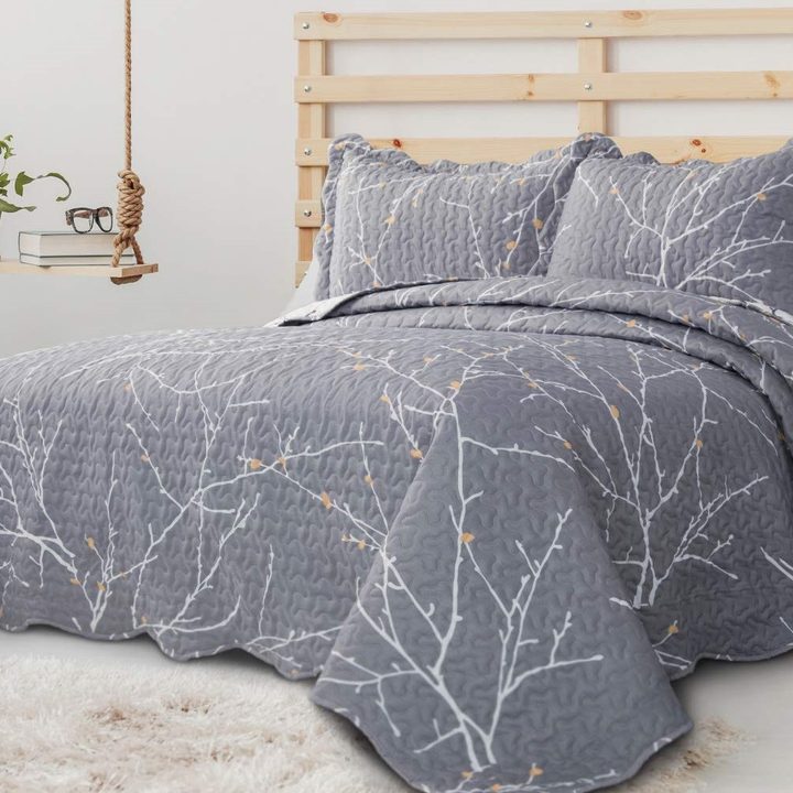 Make a statement with the gorgeous tree branch floral design of the Bedsure Coverlet Set. Contemporary and elegant, this attractive coverlet is more than just a pretty face. It provides lightweight comfort while you sleep and delivers the stain-resistant softness of microfiber with premium stitching to retain strength and shape.