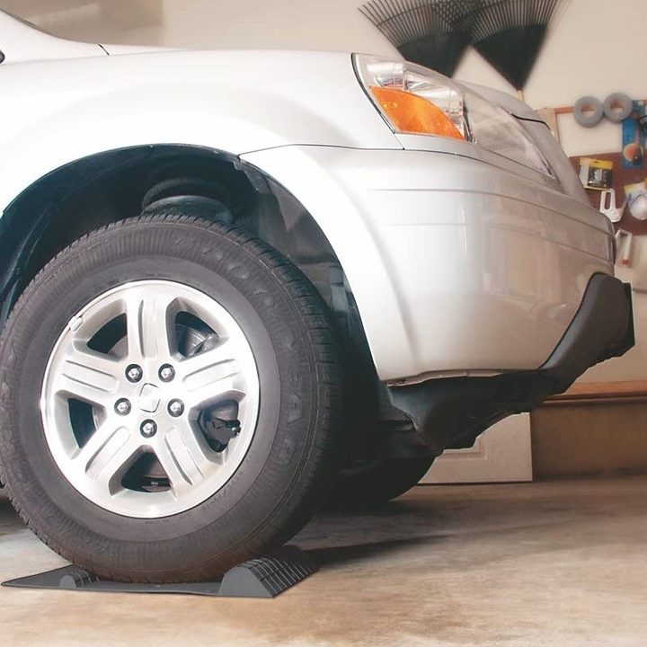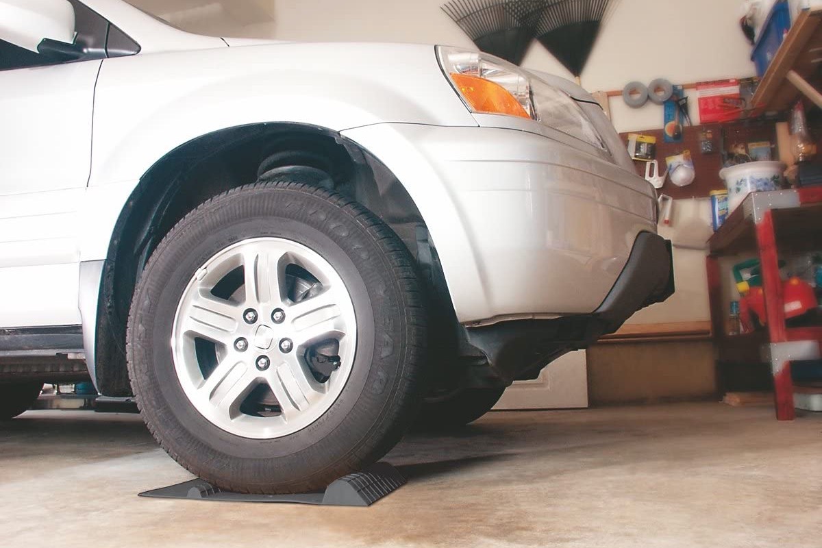 Maxsa Innovations’ mat is a specialized parking mat to make parking easier and safer. Two different-sized bumps indicate when you’ve reached the mat and the center, respectively. To install, place the adhesive side down on a designated spot where one of your front/back wheels park. The mat measures 2” x 11” and is 2” at its tallest.